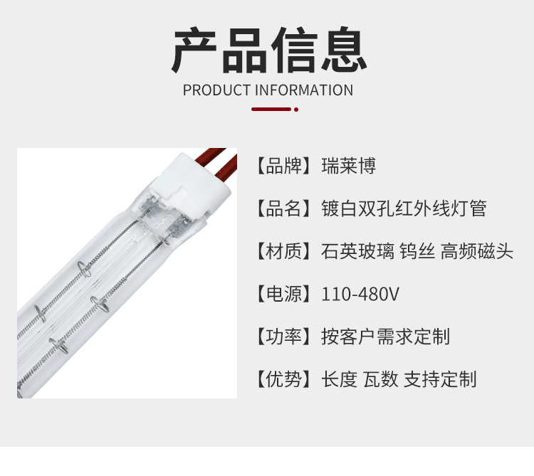 镀白双孔红外线灯管