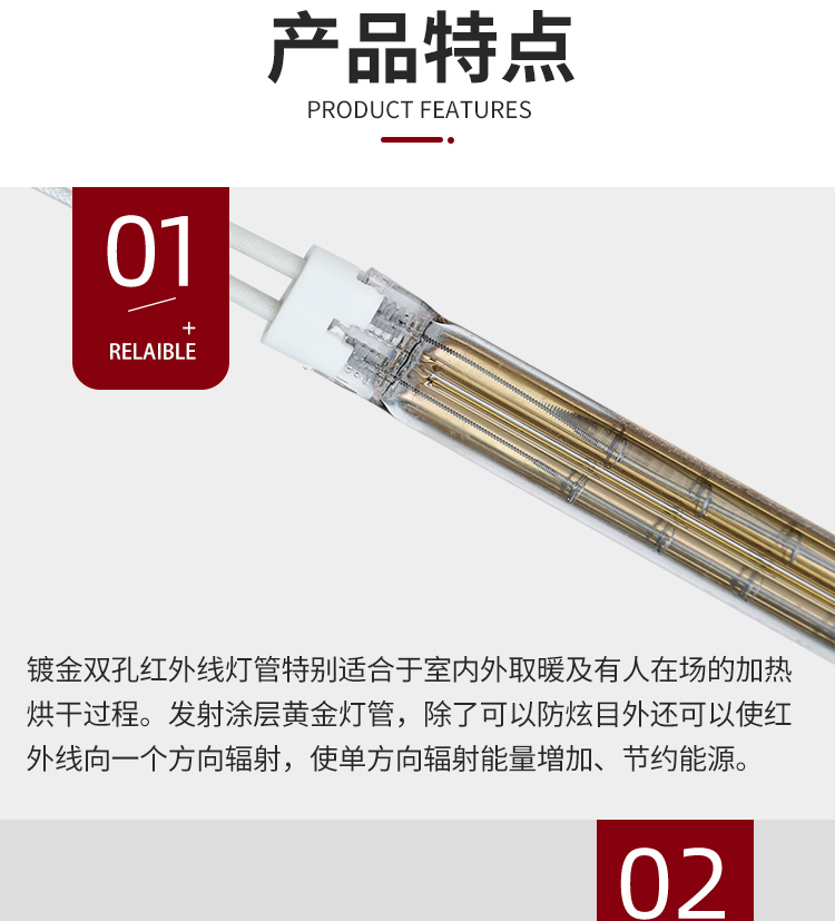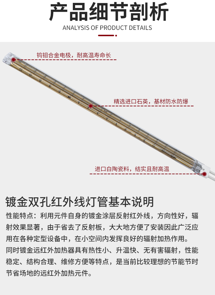 镀金双孔红外线灯管
