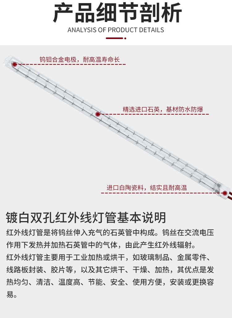 镀白双孔红外线灯管